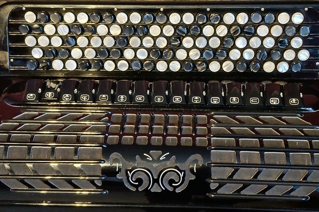 Accordéon Chromatique à boutons et à basses Chromatiques (Free Bass), de marque BUGARI ARMANDO, modèle BAYAN 2RC B-Griff – CASSOTTO